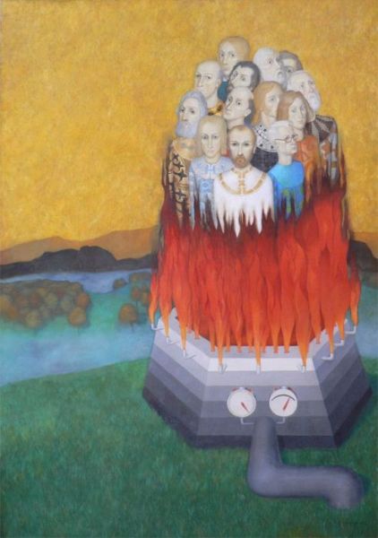 Nous avons suivi nos évolutions à distance. Elle est devenue la personnalité exceptionnelle connue sous le pseudonyme d’Ana Blandiana (3), j’ai suivi mon « Chemin à travers tableaux » qui est en même temps le titre de l’album contenant une partie des « Cahiers d’atelier » avec bon nombre de reproductions, paru en 2014 en France. J’en ai envoyé un exemplaire à Ana Blandiana et à son époux, Romulus Rusan (4), caractère vertical, lumineux qui par ses préoccupations littéraires et civiques m’était très proche. Nous n’avons pas eu souvent l’occasion de nous parler de vive voix et c’est surtout à travers ses écrits que j’ai découvert la convergence de nos opinions. Comme moi, il nourrissait un profond sentiment de vénération pour la rectitude du comportement, la force de caractère, la probité et la ténacité qui ont conduit Iuliu Maniu à l’accomplissement de son terrifiant destin (5). Je savais depuis longtemps que la dépouille du Menhir de Bàdàcin, n’a jamais été identifiée, qu’elle gît toujours perdue dans la fosse commune de la prison de Sighet où elle fut jetée par les « hommes de bien » qui nous gouvernaient en ce temps-là. C’est dans ce cadre mental que j’ai fait la donation du triptyque « Requiem dédié aux victimes du communisme » au Mémorial Sighet car il me semblait que sa place était dans le Cimetière des Pauvres, « la Nécropole de ceux qui n’ont pas de sépulture » et il y est, par les soins d’Ana Blandiana.