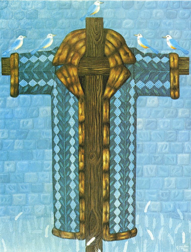... signe d'une spiritualité vivante, cette croix vêtue d'un lourd manteau,