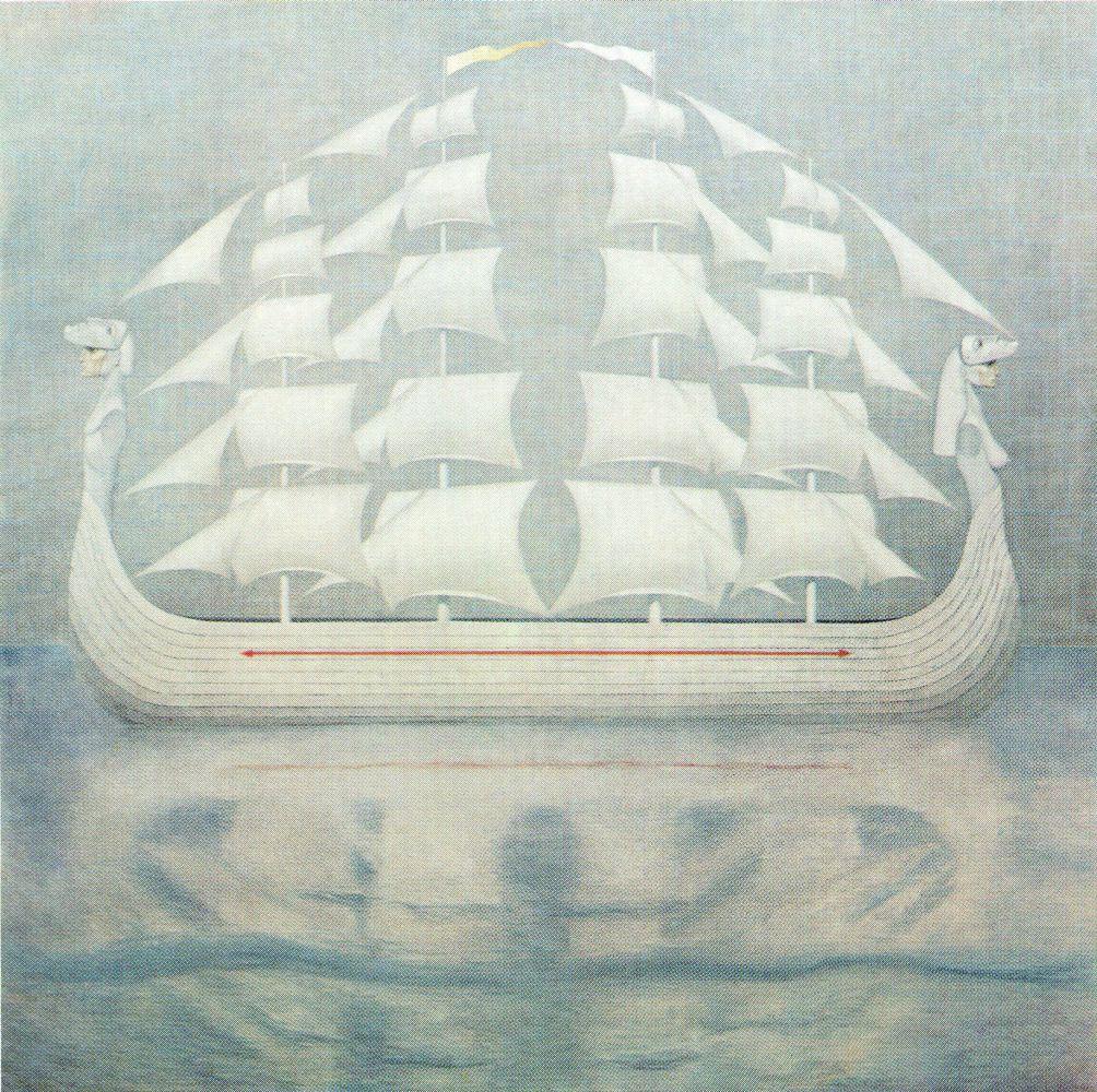 Il intitule Raison d'immobilité un navire à deux poupes dont la voilure, par moitiés,