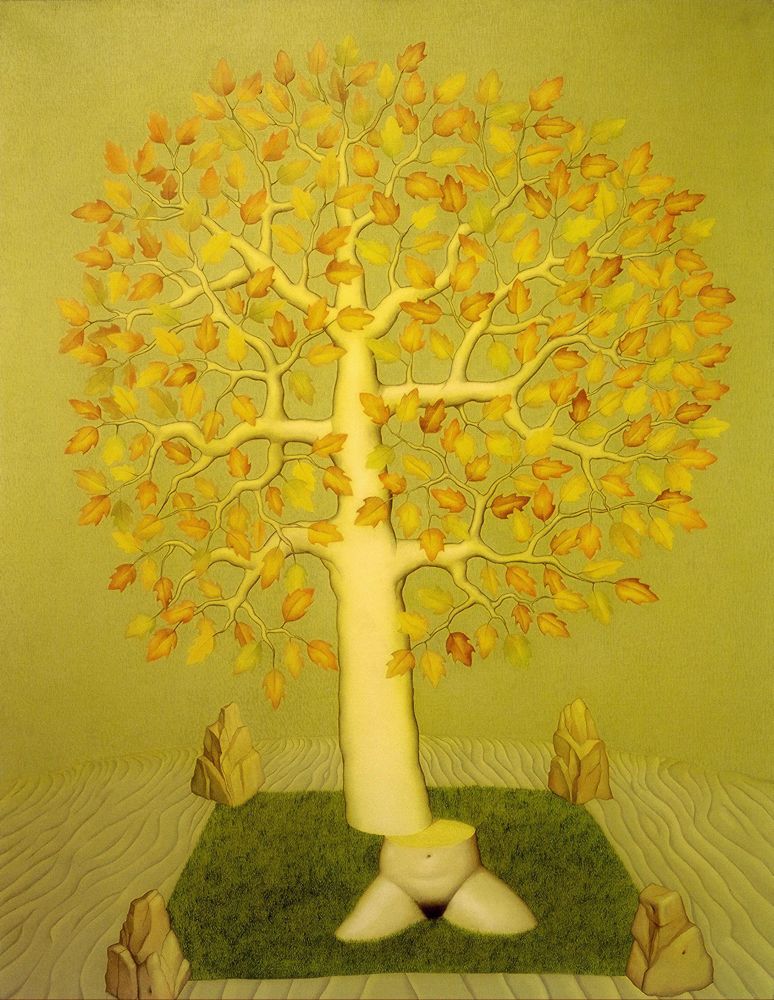 naturels (cimes des montagnes, arbres, pierres, oiseaux), fait jaillir des